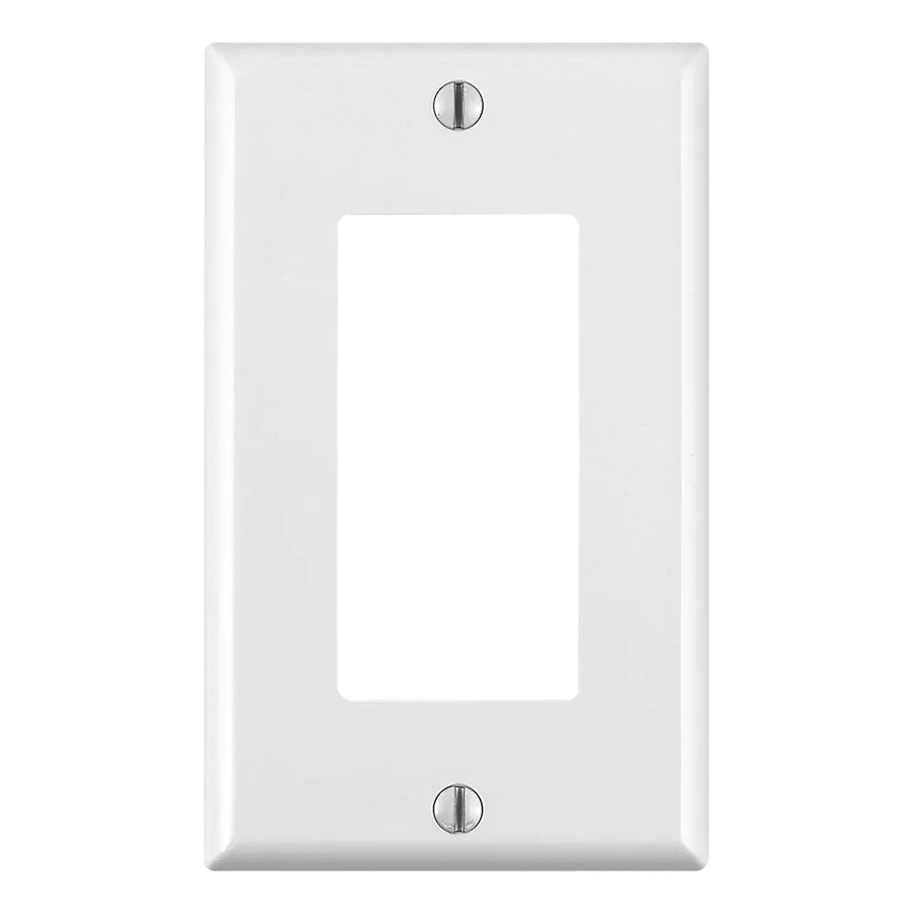 The 1-Gang Decora Device wall plate boasts a smooth face and rounded edges to minimize dust accumulation. It is engineered for high dielectric strength and arc resistance, ensuring both safety and durability. This wall plate provides a sleek, modern appearance while offering essential protection for your electrical outlets or switches. Perfect for enhancing your home's aesthetic while maintaining functionality and safety.