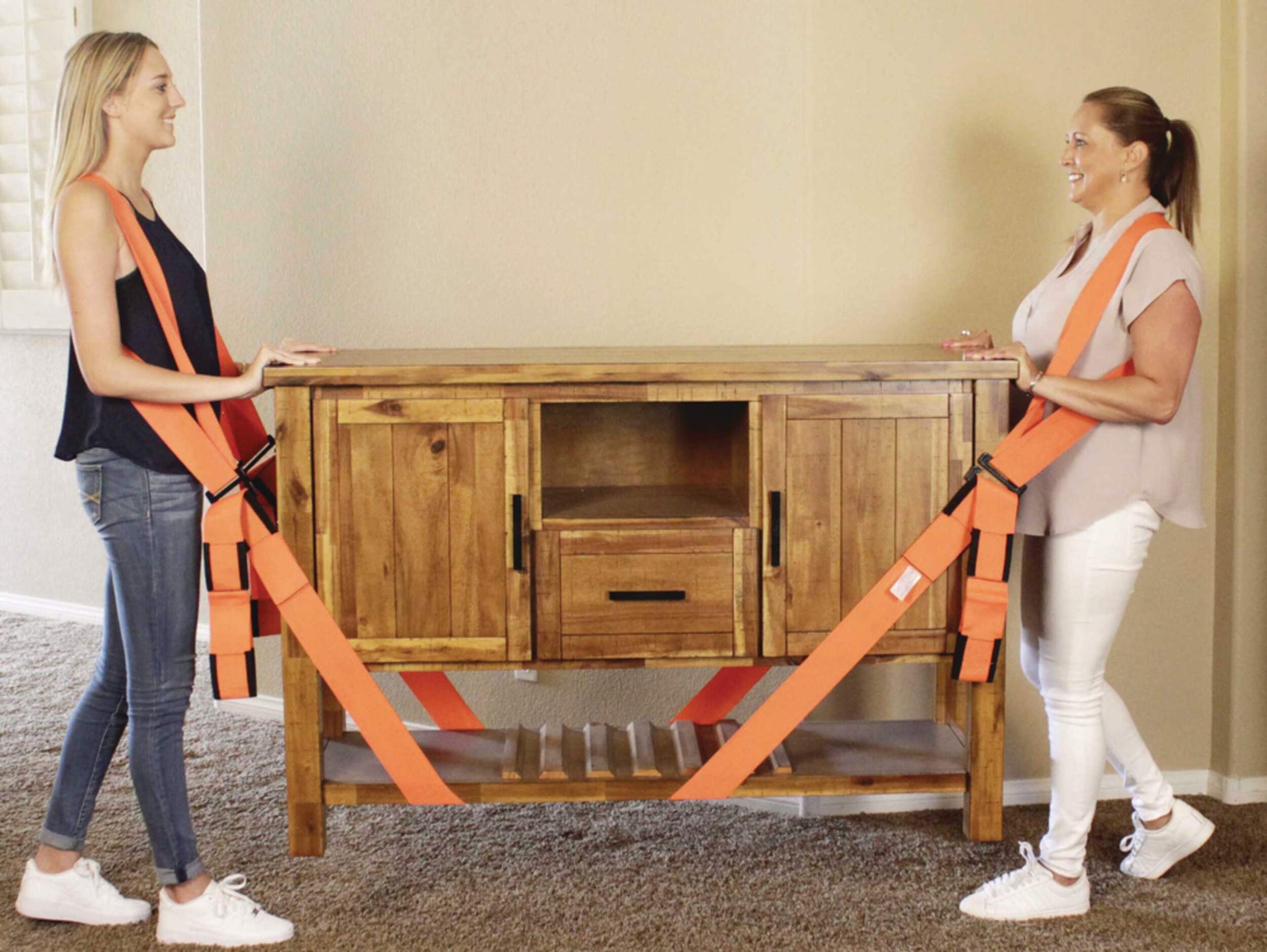 The Forearm Forklift Adjustable Moving Cradle in vibrant orange is an essential tool for safely lifting heavy items up to 800 lbs (362.8 kg). This 2-piece set includes two harnesses and adjustable center straps, promoting proper lifting techniques to reduce the risk of injuries. Its user-friendly design helps protect floors from scratches, dents, scuffs, and scrapes, making it an excellent choice for efficient and safe transportation of large, bulky items. This moving cradle is perfect for individuals seeking a safer and more effective method to transport heavy items.