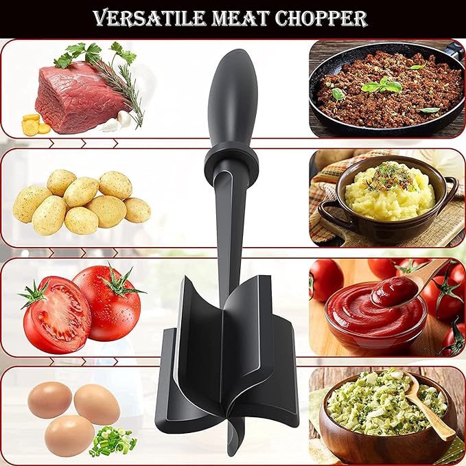 - MUST-HAVE KITCHEN TOOL: Every kitchen needs this versatile meat chopper! Perfect for breaking up ground meats while frying, effortlessly making egg salad, and creating creamy mashed potatoes. It's a game-changer for protecting your non-stick pans from scratches while cooking hamburgers. An indispensable kitchen utensil!