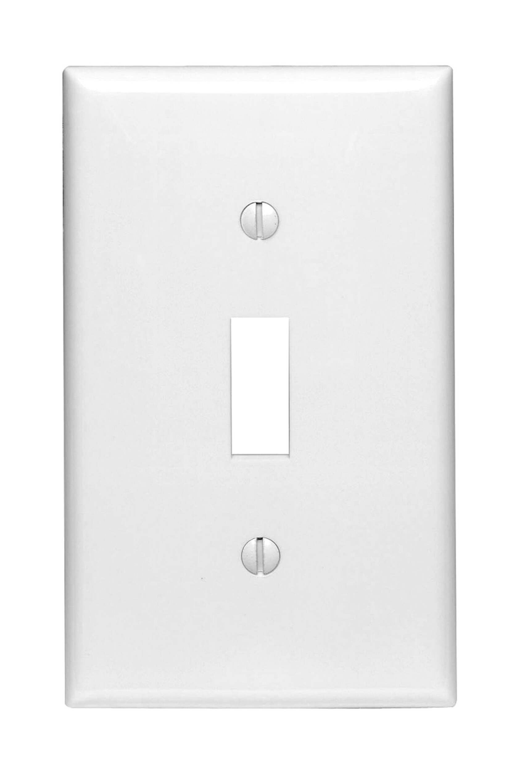 The toggle style switch midway nylon wall plate offers dependable performance in a sturdy, unobtrusive design. This single-gang wallplate provides convenient access to your home's electrical components while blending effortlessly into its surroundings. Its midway size conceals minor wall imperfections, and the white color seamlessly integrates with most decor styles. Ideal for individuals looking for reliable, everyday electrical accessories that offer simple functionality and ease of use.