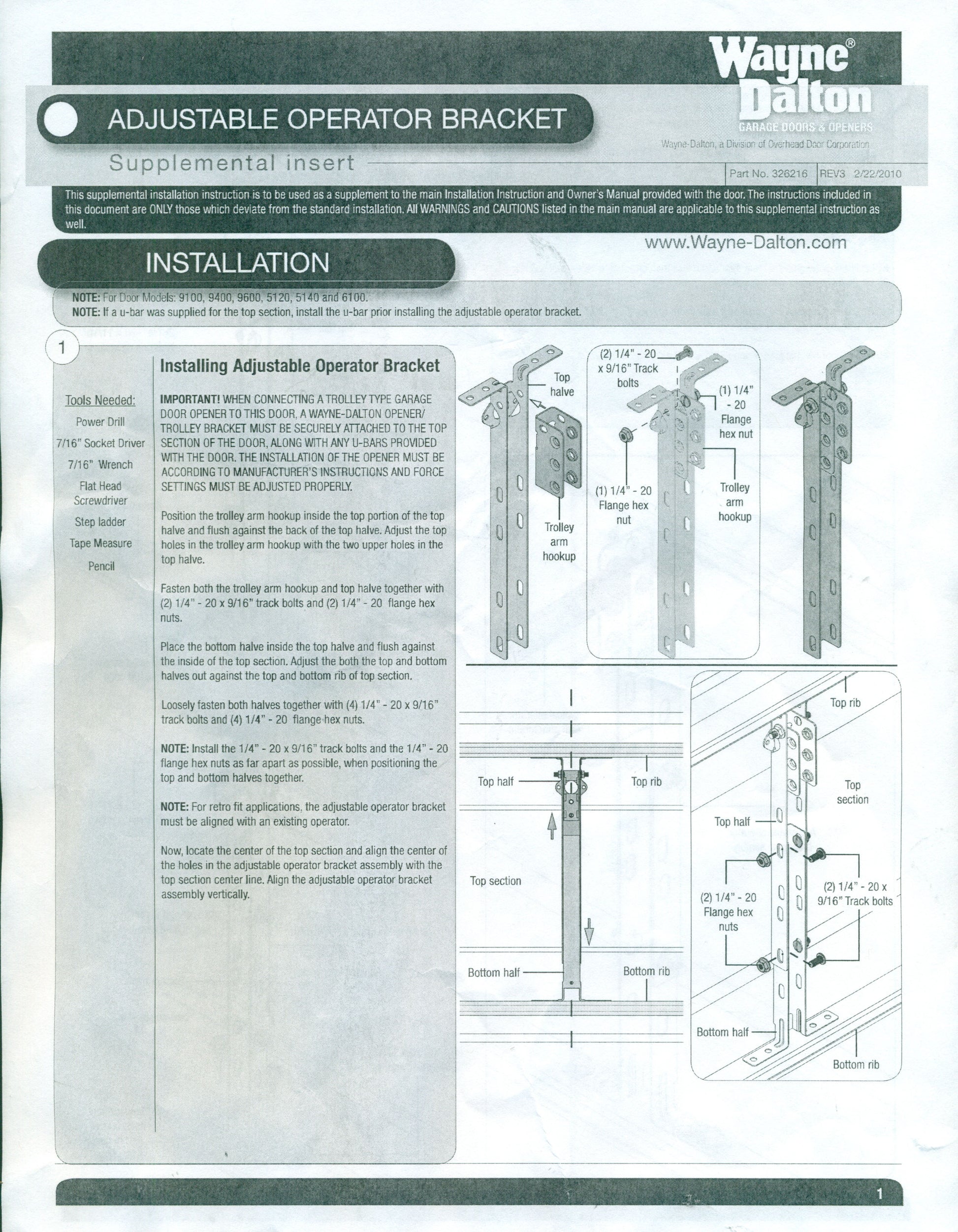 Introducing the Wayne Dalton 339621 Adjustable Operator Bracket: Perfect for 9100 and 9600 Doors